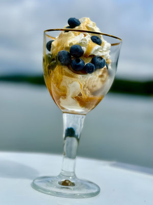 Wir haben die meiste Zeit irgendwo geankert. Für uns am Schönsten war es am Ellbogensee in der Bucht vor dem Naturcampingplatz. Wir haben uns mit der Familie getroffen, gebadet, gut gegessen und lange "geklönt". Mit dem Beiboot wurden morgens frische Brötchen vom Campingbäcker fürs Frühstück geholt und es gab jede Menge interessanter Eindrücke auf dem Platz. Irgendwie hatte ich das Gefühl, dass hier zwei völlig unterschiedliche Kulturen friedlich aufeinander treffen. Alleine die Angebote auf den Aushängen der Rezeption sprechen für sich.