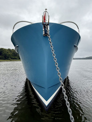 In Priepert rammt uns am frühen Morgen fast ein Hausboot. Die Chartercrew hat falsch geankert und treibt von der anderen Seeseite ab und direkt auf uns zu. Der "Kapitän" holt die beiden Anker ein, der Motor läuft noch nicht und nun spielt der Wind erst richtig mit der "Bretterhütte"! War ja wieder knapp. Und tatsächlich trifft dann ein anderer Skipper mit seinem schwimmenden Sarg die "No Worries" und fragt ganz trocken, ob etwas passiert sei. Fährt in die Marina und lässt sich nie wieder blicken... Ich kann Hafenmeister Jens aus Waren gut verstehen, wenn er den Hausbooten die Einfahrt in den Stadthafen verbietet.